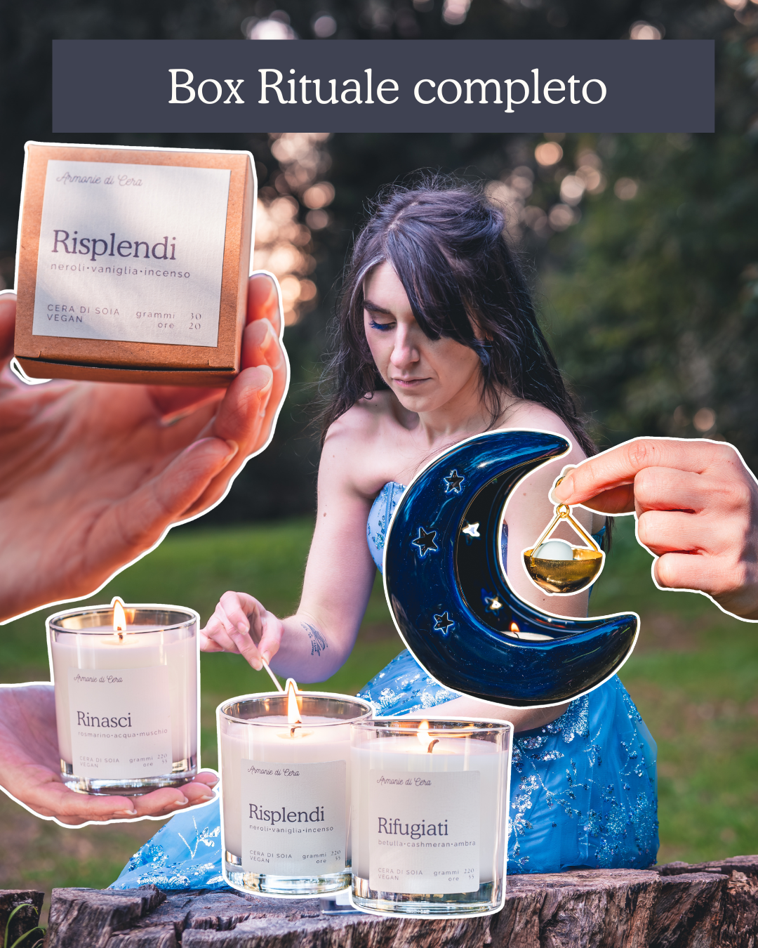 🌙 BOX RITUALE COMPLETO • 3 confezioni 30g + Bruciatore + 3 Candele