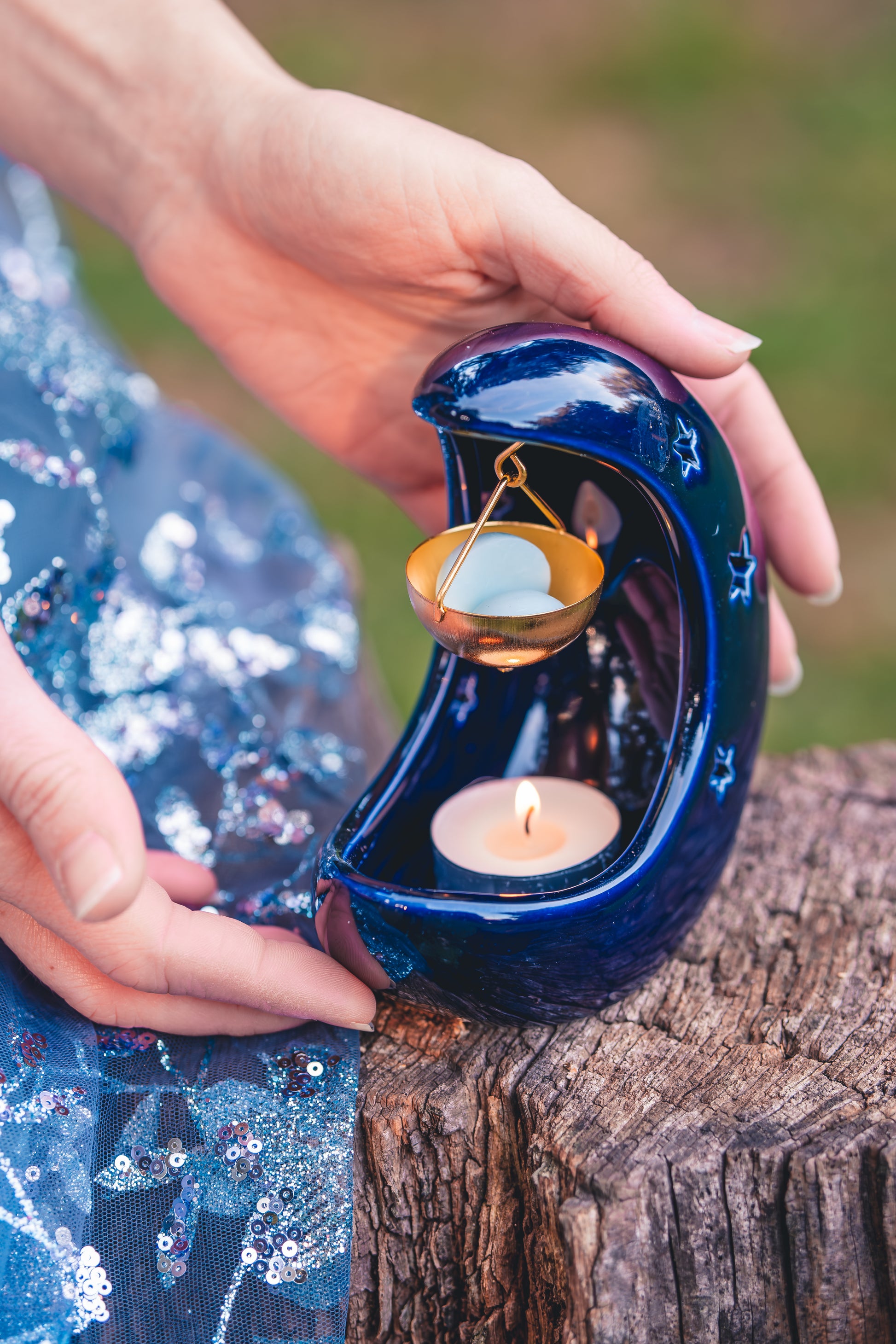 Il Bruciatore Luna Blu scioglie lentamente le cialde profumate e diffonde nell’aria le fragranze di Armonie di Cera, trasformando la stanza in uno spazio caldo e accogliente.